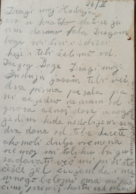 26.02.1942 card from Erdut to 4.company of 2.pioneer battalion (2.pionirska bojna) in Brčko. In 1941 4.pioneer battalions were formed, sometime in early 1942 they were renamed from pioniri to obkopari , meaning stayed the same: combat engineer.